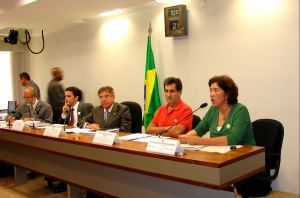 A proposta de colocar na porta principal das escolas públicas uma placa com o índice de avaliação de seu desempenho ajuda a melhorar a qualidade da educação brasileira? A ideia dividiu os convidados da audiência pública realizada nesta quarta-feira (21), na Comissão de Educação, Cultura e Esporte (CE) do Senado, que teve a participação do especialista em Educação, Gustavo Ioschpe; do conselheiro consultivo da Fundação Abrinq pelos Direitos da Criança e do Adolescente, José Marcelino de Rezende Pinto; da coordenadora da Diretoria de Currículo de Educação Integral do MEC, Maria Eveline de Queiroz; e do ex-secretário de Educação e Cultura da Paraíba, Neroaldo Pontes.