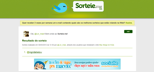Quanto mais RT, mais chance de ganhar. O sorteio será feito por meio do site Sorteie.Me e o resultado será divulgado amanhã, sexta-feira, 30/03, às 13h, aqui no blog.