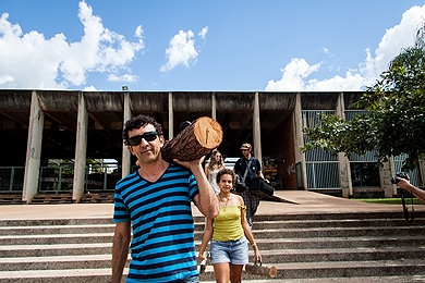 Malas de troncos de madeira circularam pela Universidade de Brasília (UnB) para provocar uma reflexão sobre a importância da preservação do meio ambiente. As malas fazem parte da obra “Travelling Forest” (Floresta Viajante), do artista plástico alemão Thomas Michael Neumaier, que está com o trabalho exposto no CCBB e no Jardim Botânico de Brasília. A proposta é convidar o público a refletir sobre as florestas, que podem seguir em viagem ao serem carregadas em fragmentos. “É a floresta partindo para nunca mais retornar?”,questiona o artista em seu trabalho.