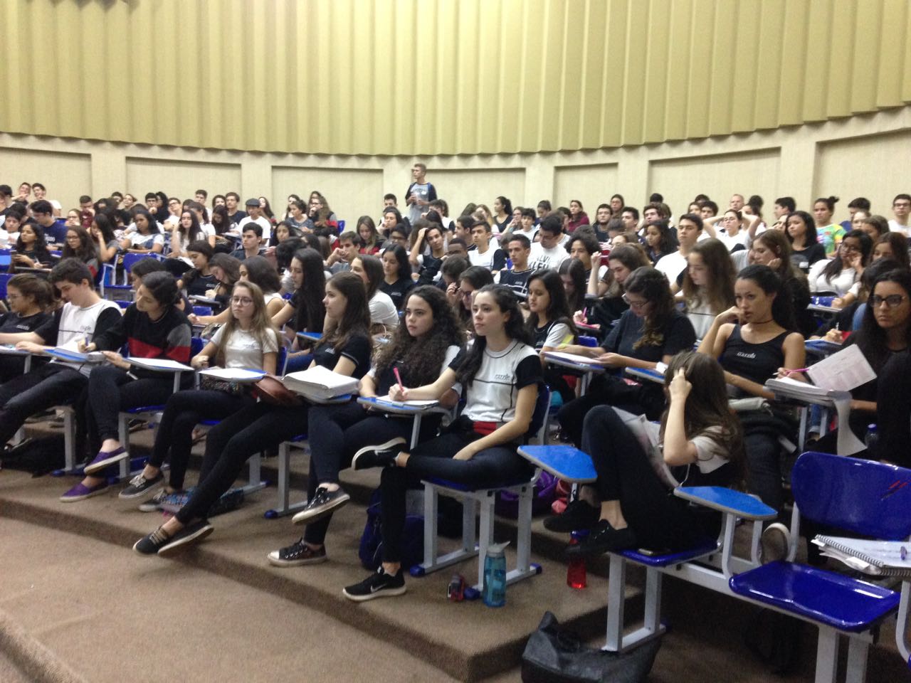 Nesta sexta-feira, 25, alunos do ensino médio do 1° a 3° ano do Colégio Galois participaram de um debate preparatório para a prova da terceira etapa do PAS – Programa de Avaliação Seriada, que será realizada no domingo 27/11. A aula foi aberta também aos alunos de escolas públicas e privadas. “Não temos pretensão de debater todas as obras em uma aula de revisão, o que discutimos são os temas recorrentes nas provas da Universidade de Brasília – UNB, fazendo associação com as obras cobradas no PAS”, explica Camilla Osiro, professora de português e organizadora do evento.