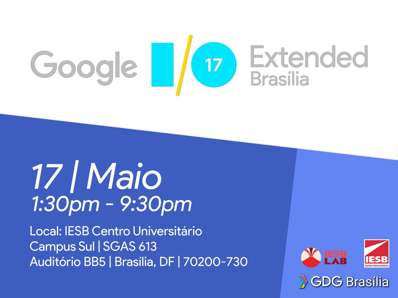 Organizado pelo Google Developers Group (GDG Brasília) e seus parceiros, o Google I/O Extended Brasília promove o compartilhamento de informações, networking e empreendedorismo na capital federal. “Este é o evento promovido pela Google mais importante do ano, onde os principais lançamentos são apresentados em primeira mão para a comunidade. Imperdível para quem é da área ou para entusiastas das tecnologias que orbitam o ecossistema Google”, conclui Patrick Nascimento, fundador do GDG Brasília e sócio da RSM (rsmnetwork.com), startup tecnológica voltada para ações de marketing, incubada no IESB LAB. O evento é gratuito e aberto ao público. Mais informações e inscrições em http://www.gdgbrasilia.com.br.
