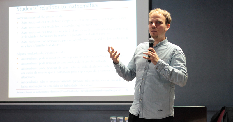 É bastante comum vermos pessoas afirmando que não gostam de matemática. Provavelmente, você conhece várias – e pode até mesmo ser uma delas. Claro, não há problema algum em não ter afinidade com a matemática (ou com qualquer outra área do conhecimento). A questão é que, muitas vezes, esse desinteresse é causado pela forma como o conteúdo nos é ensinado e isso faz com que muitos estudantes se distanciem dessa ciência sem sequer terem a chance de conhecê-la com mais profundidade. Professor da University of Frankfurt, David Kollosche pesquisou, na Alemanha, as razões desse distanciamento, quais seus riscos e como esses estudantes se sentem com relação à matemática. Ele apresentou seu estudo, intitulado Auto-exclusion in mathematics education (auto-exclusão na educação matemática), no Instituto de Ciências Matemáticas e de Computação (ICMC) da USP, em São Carlos, no fim de setembro. Apesar de ter sido aplicado na Alemanha, o professor afirma que os resultados obtidos na pesquisa podem ser semelhantes em outros lugares do mundo. Segundo ele, o medo que muitos estudantes estabelecem com a matemática pode até resultar em uma relação de dominação. “Um grande grupo de pessoas aprende que a matemática não é para elas. Silenciar pessoas dessa forma pode servir como função sociopolítica e econômica”, afirma.